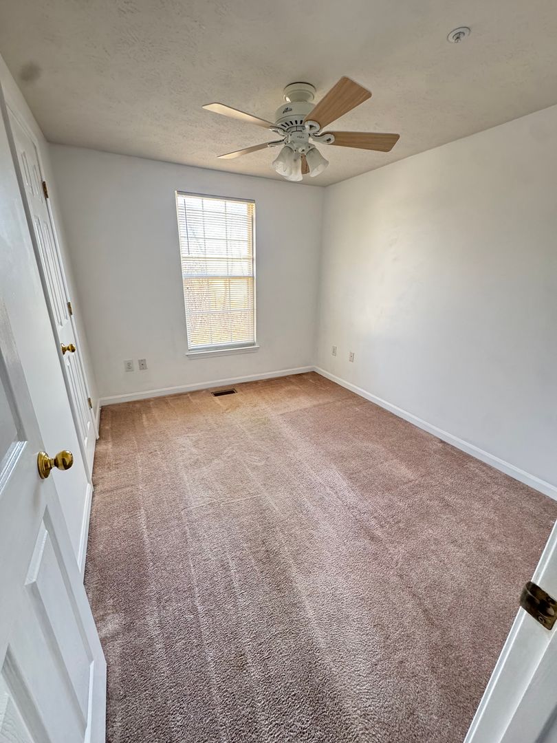 All three bedrooms are located on the second level, with two full bathrooms, including one conveniently located adjacent to the primary bedroom. The home features central air conditioning and heating for year-round comfort.